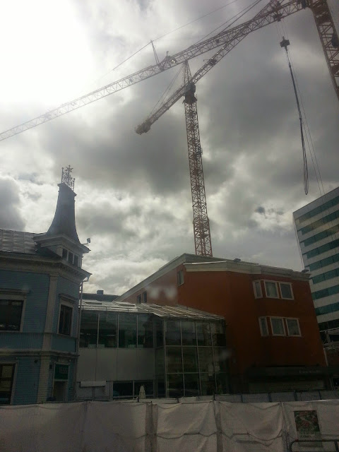 I stan håller de på att bygga en massa nya hus också. Tycker det verkar så läskigt att jobba i en såndär lyftkran, tänk vad det ska svaja där uppe. Huvva.